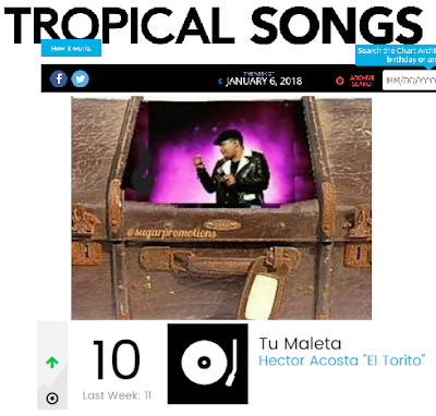 “Tu maleta”, se ha adueñado del gusto popular, pero además se mantiene sonando de manera constante a través de los principales medios de difusión del país y los Estados Unidos, a tal punto que recibió el 2018 en la posición #10 del prestigioso “Charts Tropical Sounds” de Billboard.